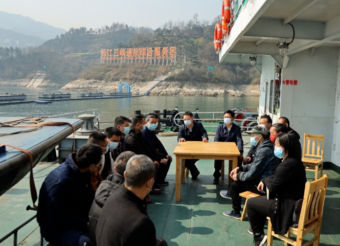 三峡局局长刘亮一行到综合服务区与船方座谈