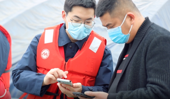 上船头宣传“三峡通航e站”小程序使用方法