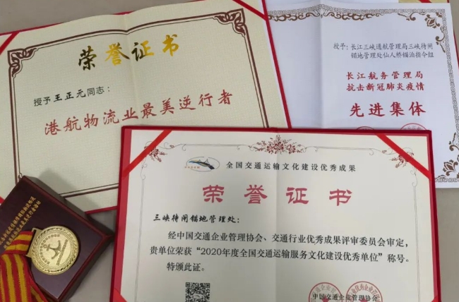 一项项骄人成绩,见证成长和坚守,鞭策进步与蜕变。综合服务区荣获中国郑和航海风云榜“2020年航海风云人物·领航人物”,综合服务区日常运行管理单位三峡待闸锚地管理处荣获“全国交通运输服务文化建设优秀单位”荣誉称号,船员流动课堂被评为宜昌市学雷锋活动示范点,综合服务区义务理发员荣获“港航物流业最美逆行者”称号……